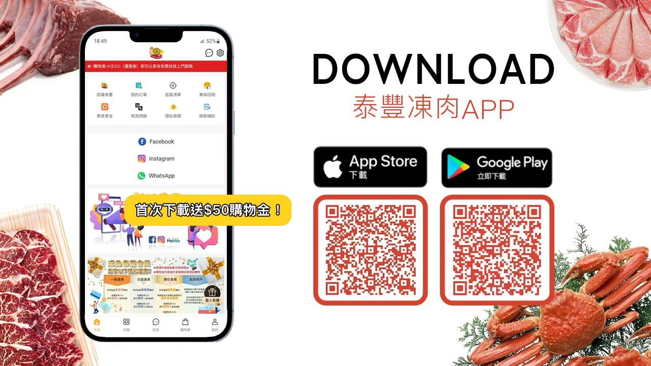 首次下載泰豐凍肉食品app 即送 $50 購物金