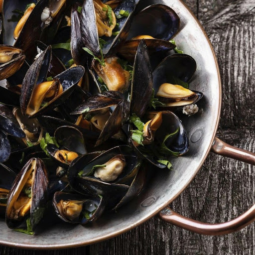 白酒忌廉煮藍青口