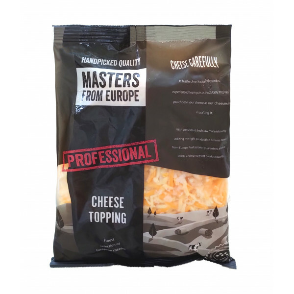 由歐洲FFT INTERNATIONAL的自家品牌: 「Masters from Europe」出產的芝士,他們的芝士產品享負盛名,受不同人士喜愛,而這款雙色芝士碎混合車打及馬蘇里拉芝士可以有多種食法,可配合意粉、薄餅、焗飯,香味濃郁!