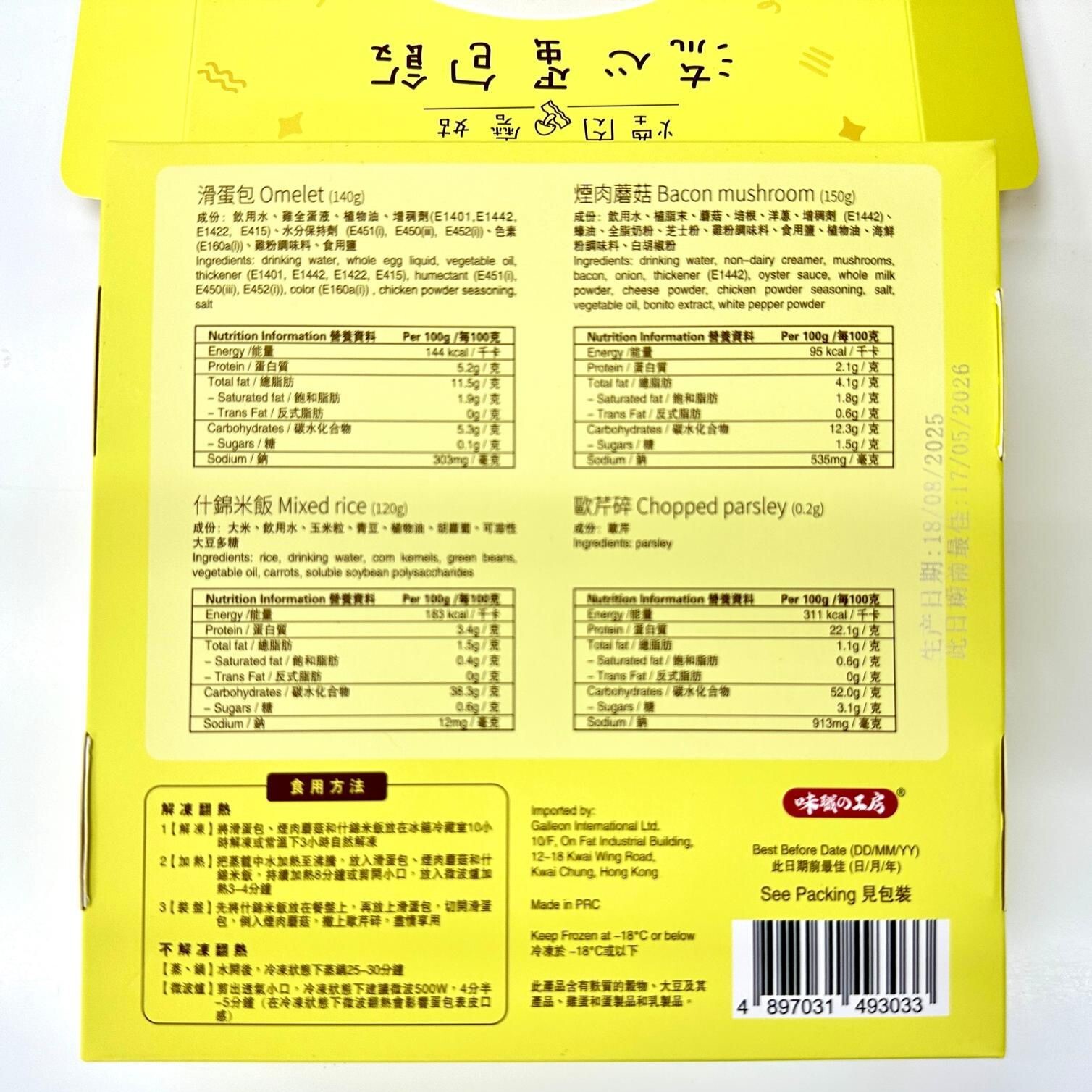 融合了日式及西式風味的加熱即食料理。每款食材獨立包裝不串味;選用精選東北大米,配上豐富濃稠煙肉蘑菇醬汁,覆上金黃柔嫩流心蛋皮,無需繁複烹調,即可輕鬆享用視覺與味覺的雙重享受。